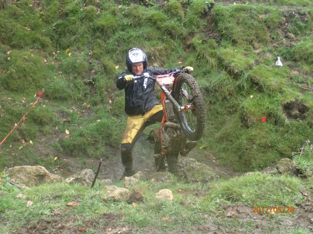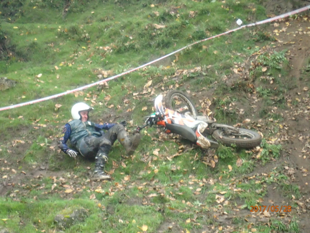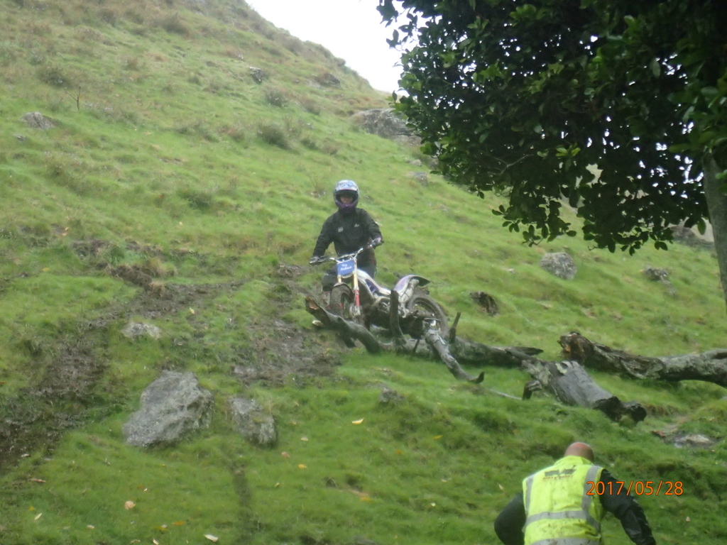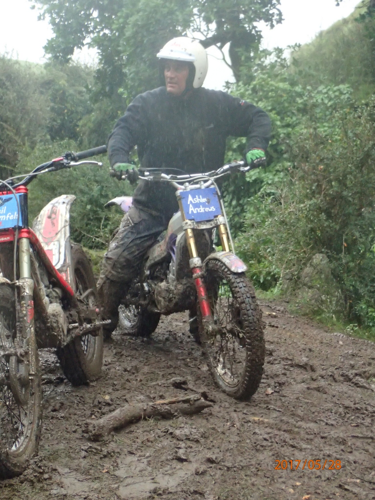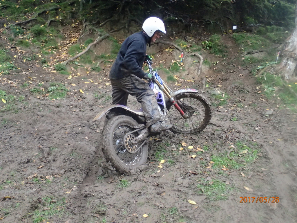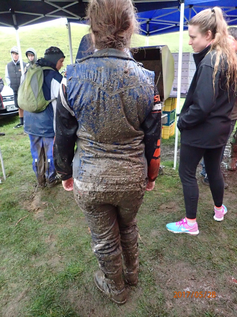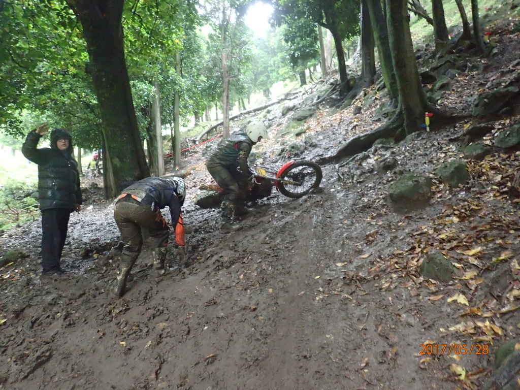 It was raining consistently all day. On the first lap the sections weren’y too slippery but I wasn’t having fun. I was getting heaps of fives and had a bit of an argument with dad.