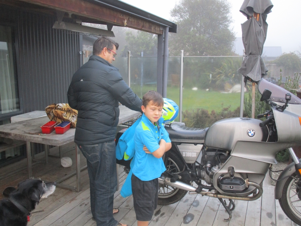 Phil walked Sidney to school this morning. Should have worn something other than his jandals because, half-way there, he realized it was too cold for jandals!