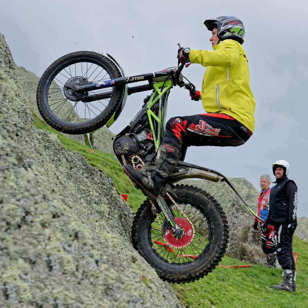 Dylan, Matt and Carl had to add some expert splats to the A line on the day and provided some impressive riding for the specators and budding young (and not so young) trials riders. A vertical boulder on section 6 had me holding my breath as they line up at the bottom, preparing mentally for the jump to the top, with the catcher precariously balance on the top ready to catch or get out of the way. I don’t like heights, so this heightens the drama for me.