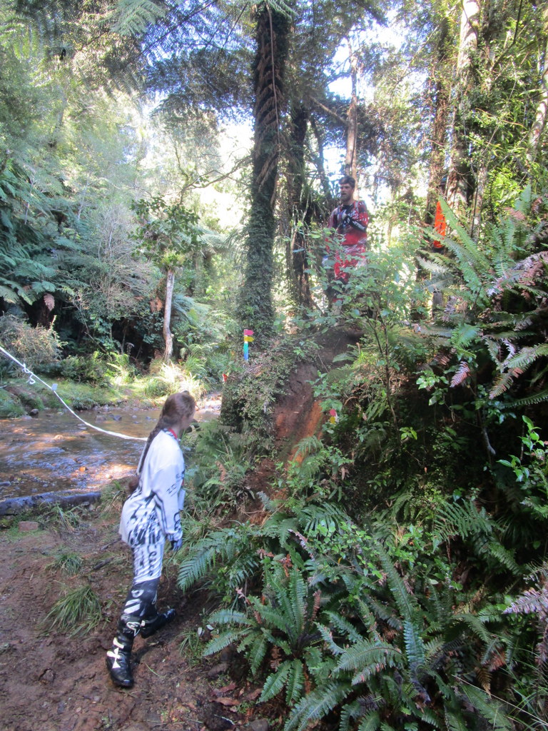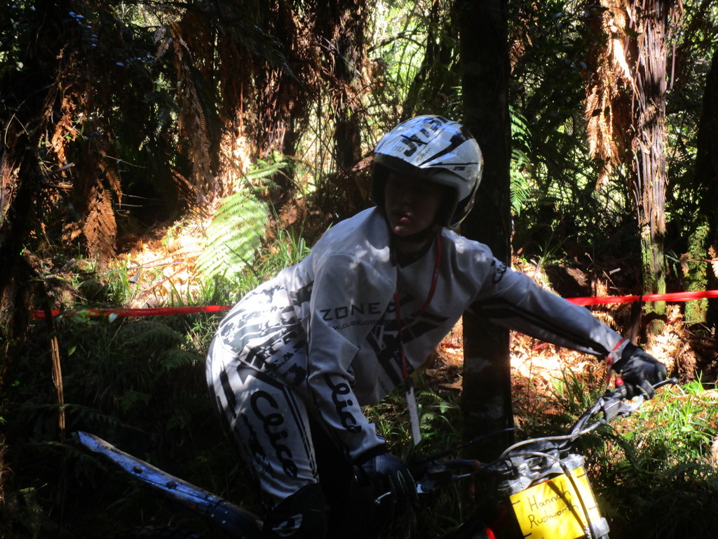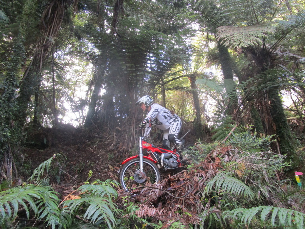 William (9) the brand new trials rider started the day with a nervous tumble, riding over the first hump into the pine trees on section one. Gave it a handful of trottle lauching the bike into the air. We all cringed, but dad picked him up and he kept riding, picking a few sections to have a go on, consistedly cleaning section 2,3, and 4, getting his confidence. I asked him if he liked it and he was amped, having a lot of fun.
