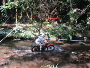 I rode around with Barry Bailey, who I’ve ridden with before down in Wellington. He has recently moved to Whanganui and has been busy with their new house, so dropped back to sportsman, through lack of recent riding and MOMCC’s reputation of setting a harder trial. He out rode me as usual, much steadier and better at keeping his momentum up through the obstacles. He found sportsman a bit easy, but found the quarry rock a mental challege as Ixion trials are generally more wet and greasy, more bush and farmland. He took the clubman line on section 1 on the last lap, which gave him a 5, which would have been another clean on the sportsman line.